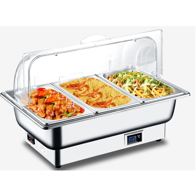 +237 671 280 469Cuisinière de buffet en acier inoxydable équipée de 3 plateaux chauffants et d’un réglage tactile pour maintenir efficacement vos plats au chaud jusqu’à 100 °C. Idéale pour hôtels, restaurants et buffets grâce à son isolation thermique et sa structure durable.