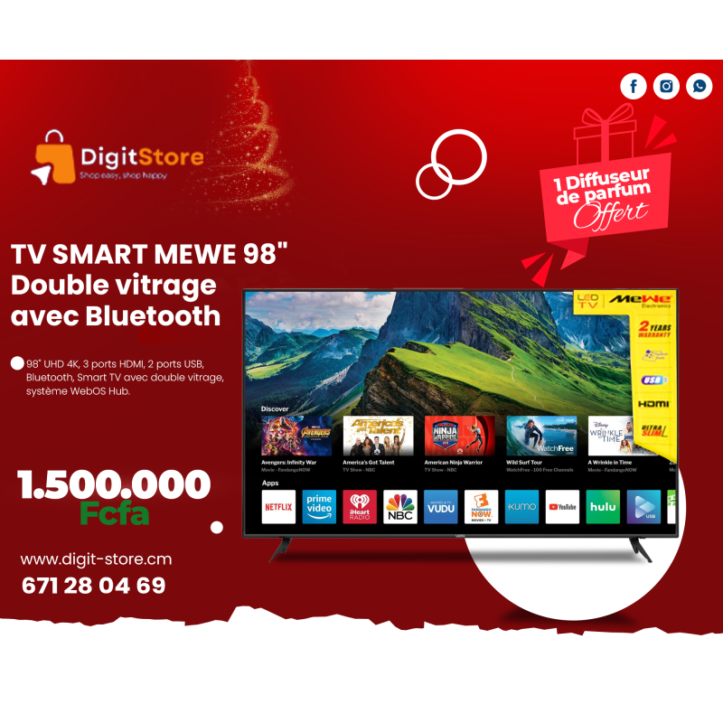 TV SMART MEWE 98" Double vitrage avec Bluetooth