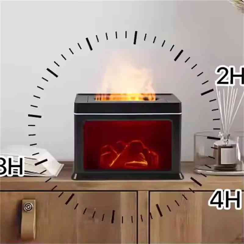 Humidificateur d’ambiance portable et silencieux avec effet flamme et LED, idéal pour la maison, la voiture ou le bureau.